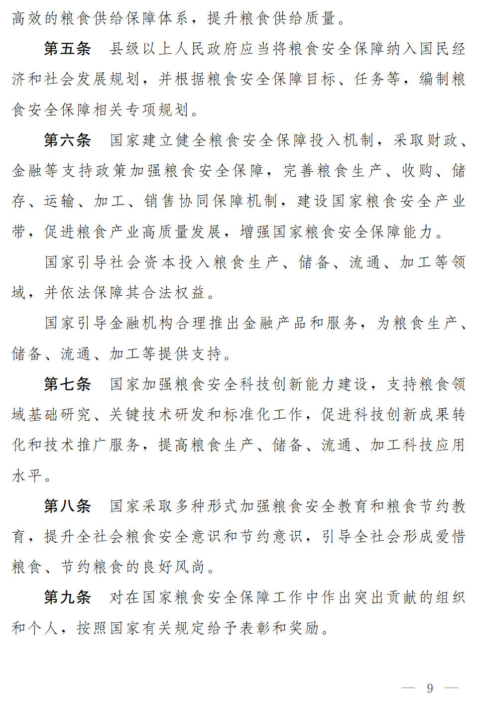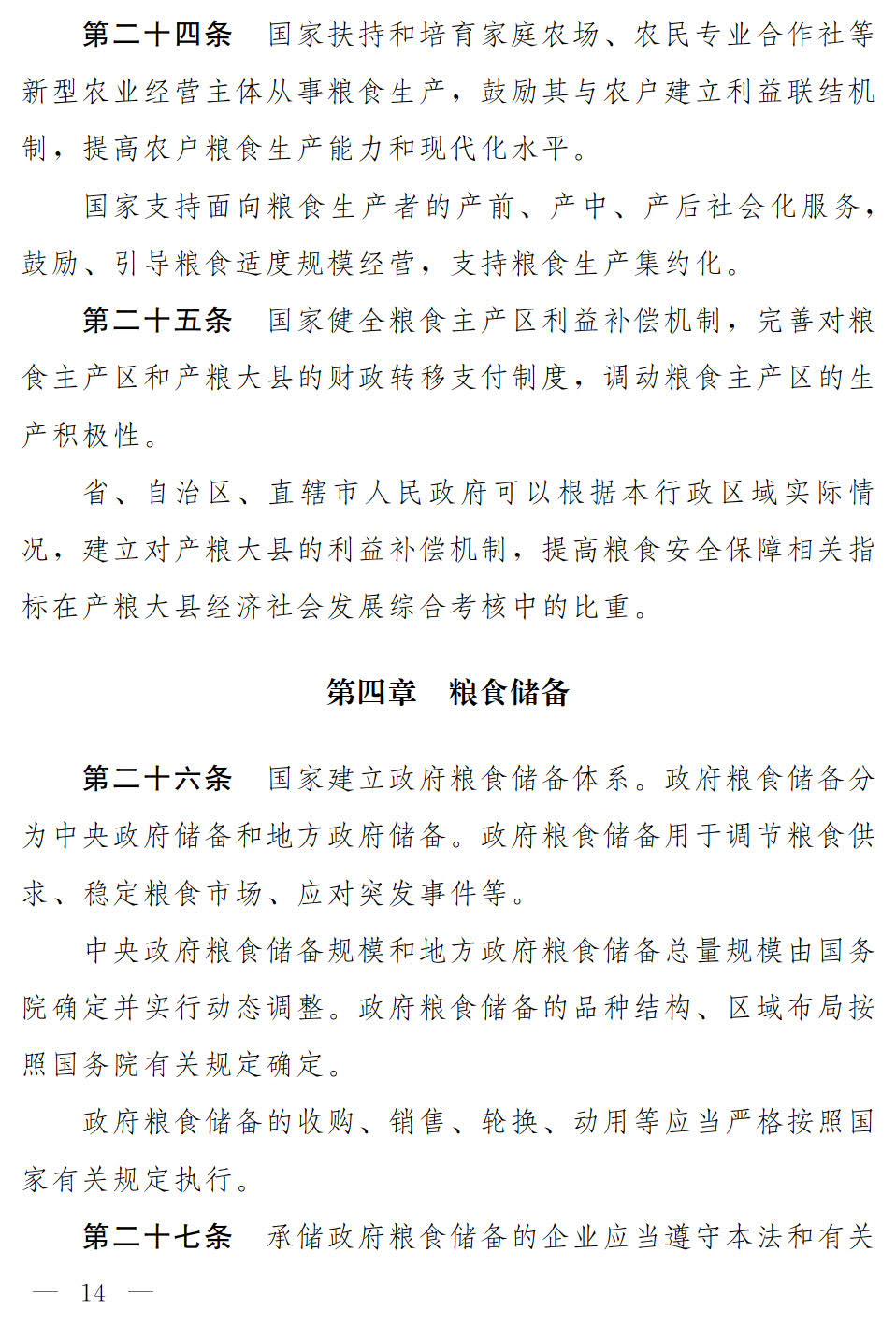 【查看政策原文:粮食安全保障法(草案)征求意见】