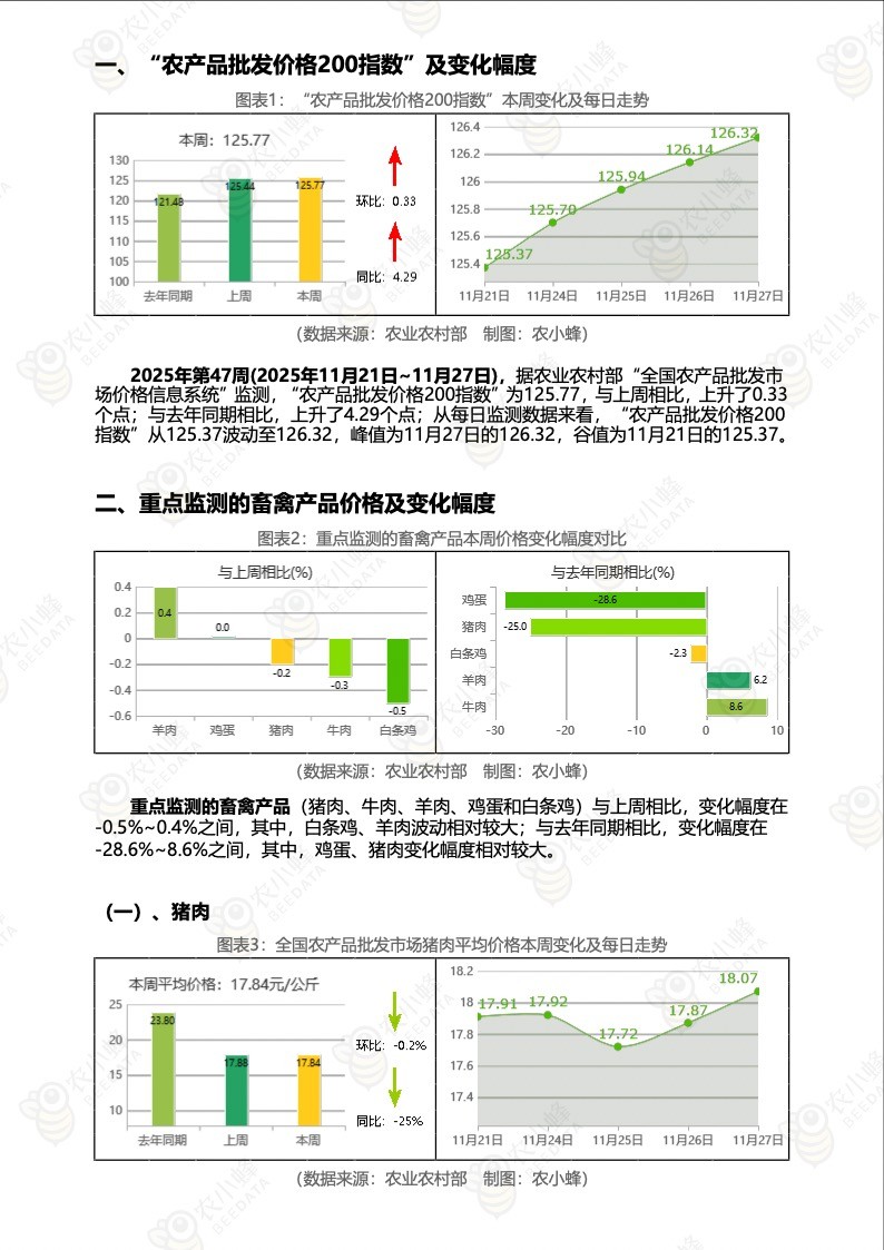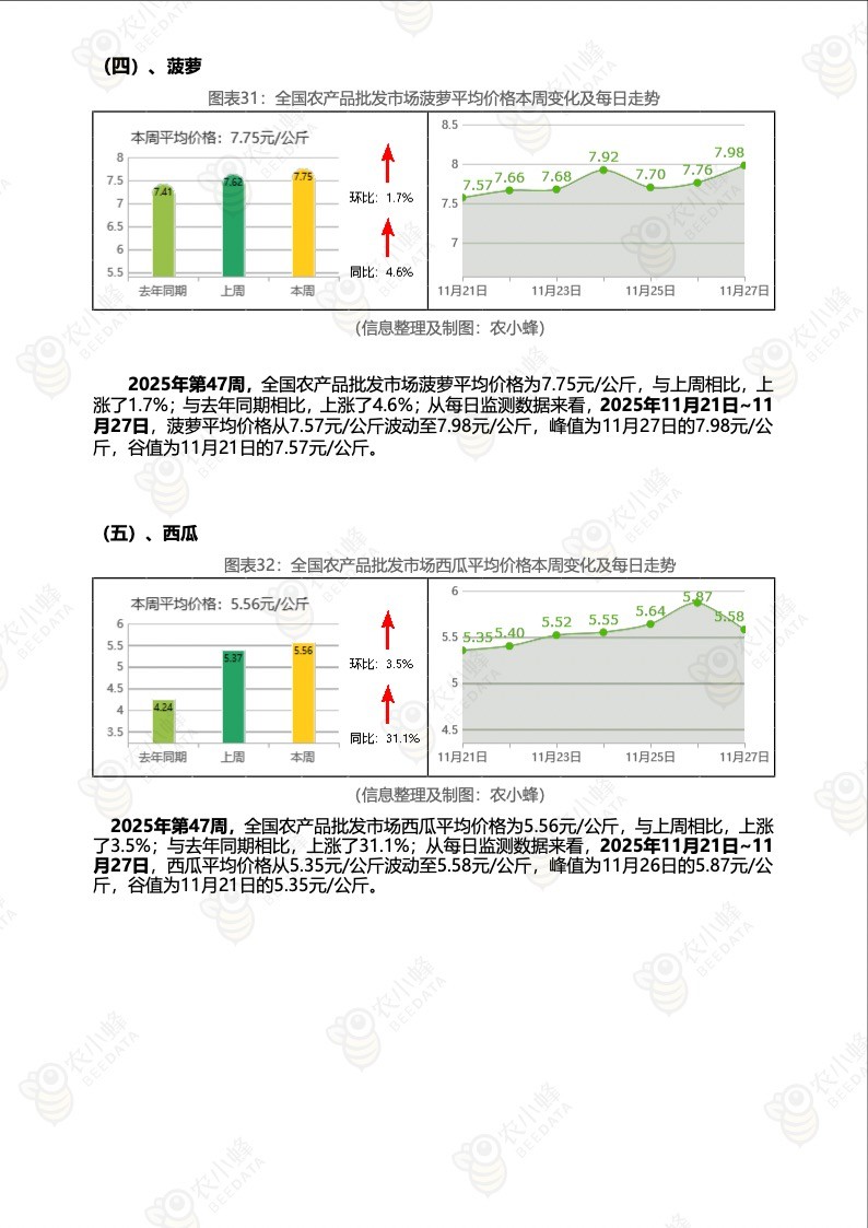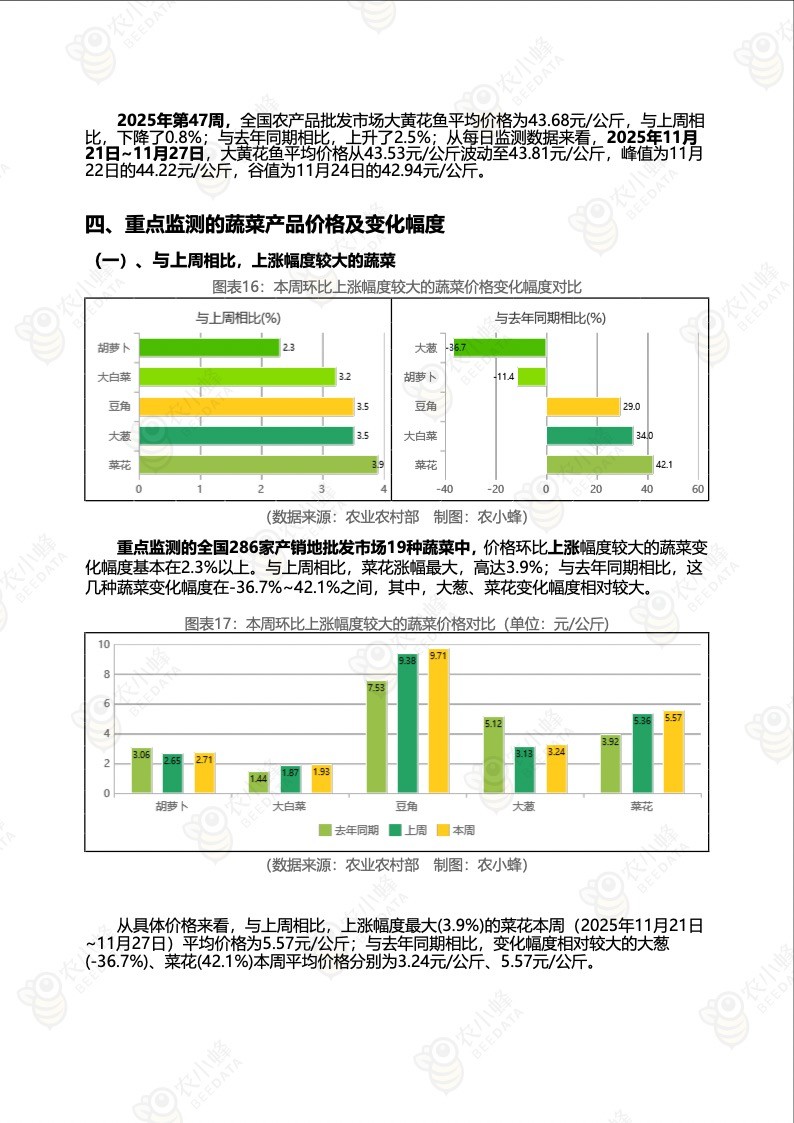 《农小蜂:全国农产品批发市场价格行情监测周报(2025年第47周)》