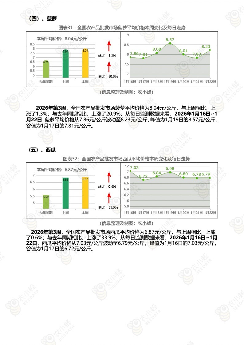 《农小蜂:全国农产品批发市场价格行情监测周报(2026年第3周)》