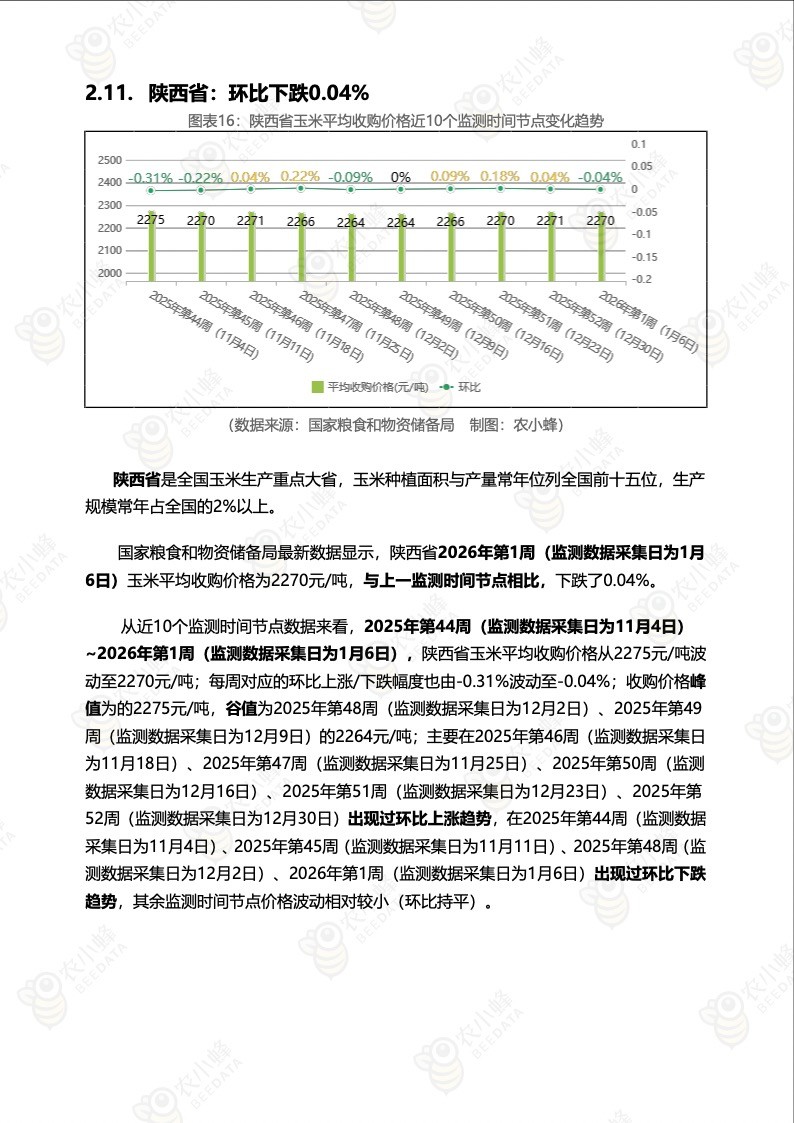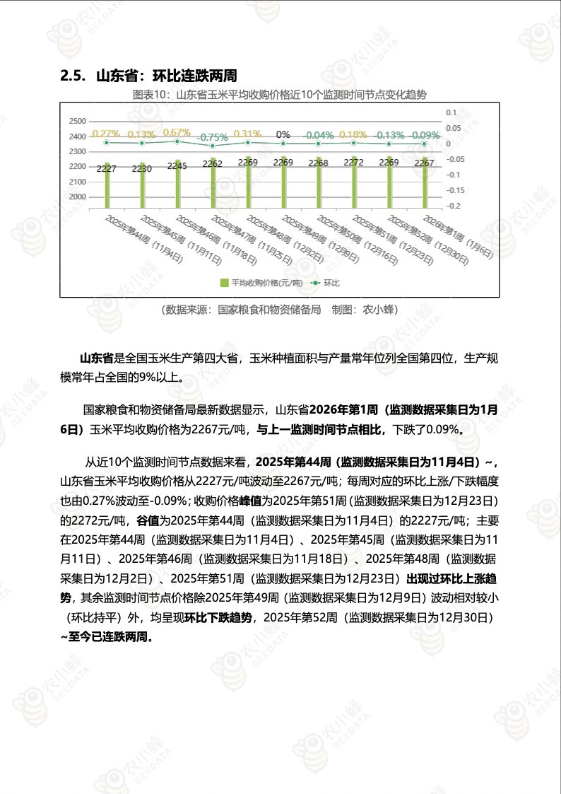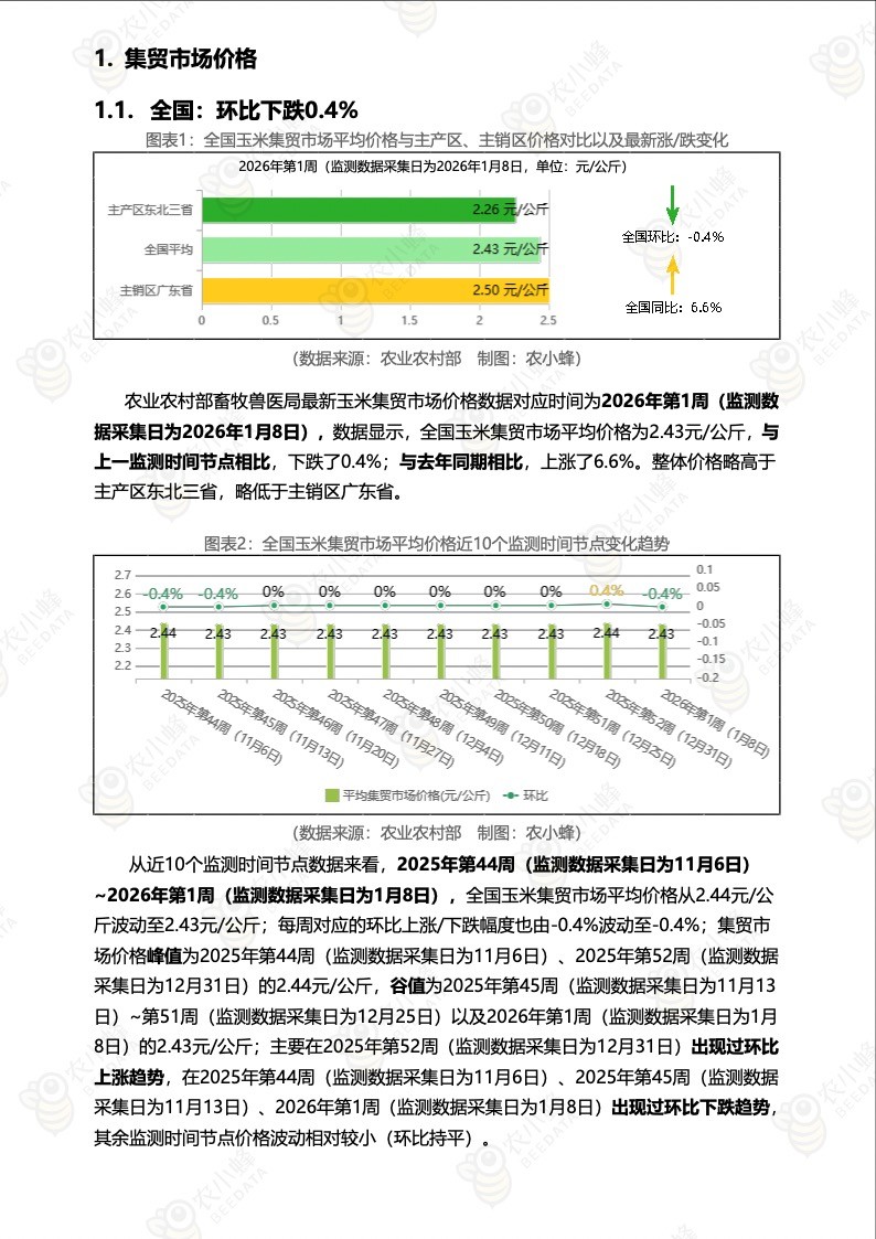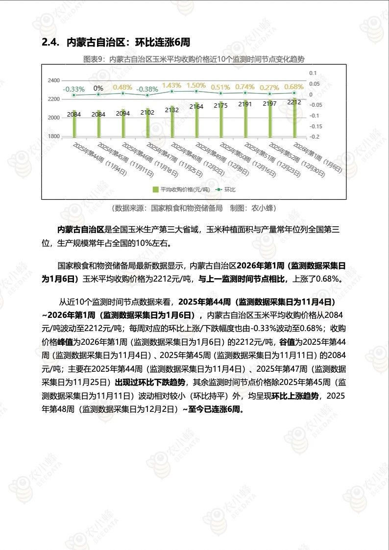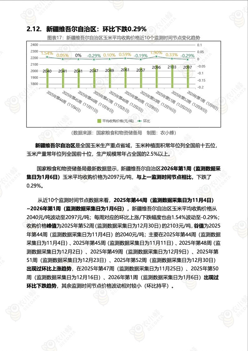 《农小蜂:全国玉米价格行情监测周报(2026年第1周)》