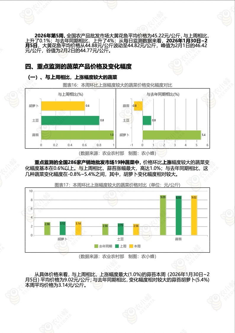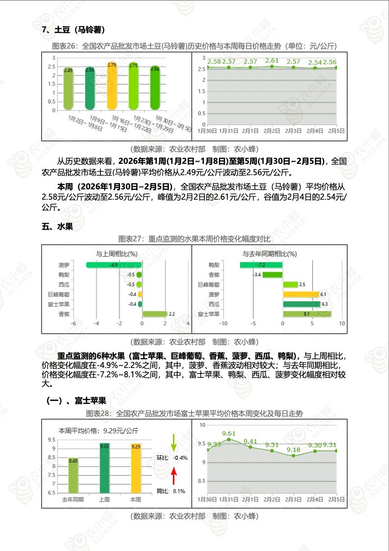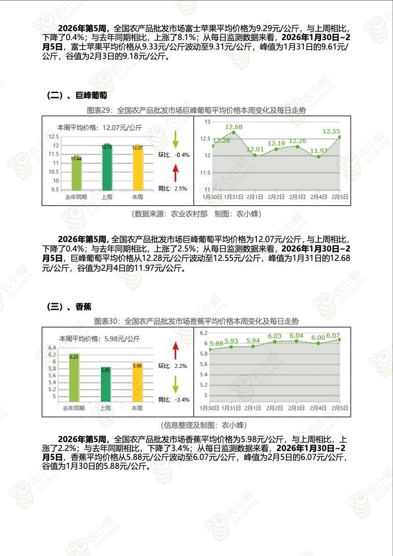 《农小蜂:全国农产品批发市场价格行情监测周报(2026年第5周)》