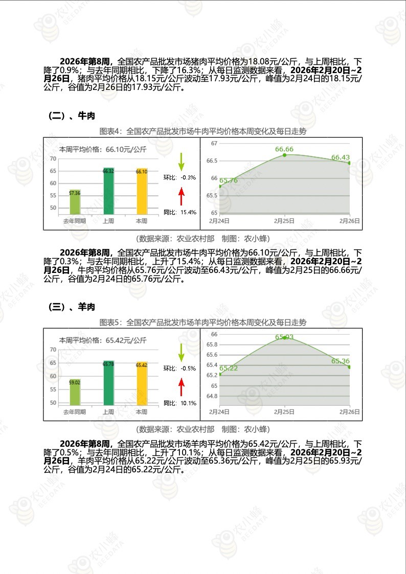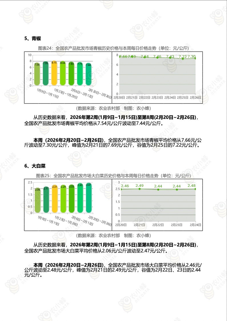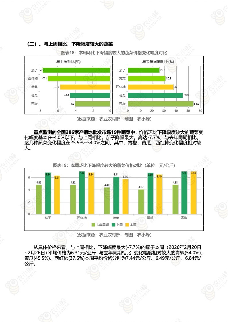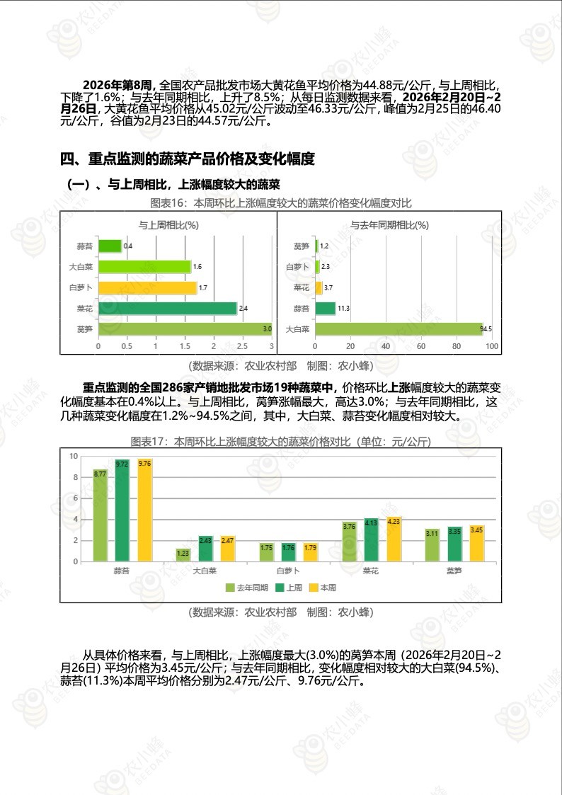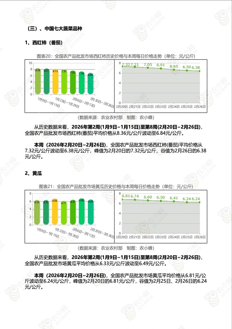 《农小蜂:全国农产品批发市场价格行情监测周报(2026年第8周)》