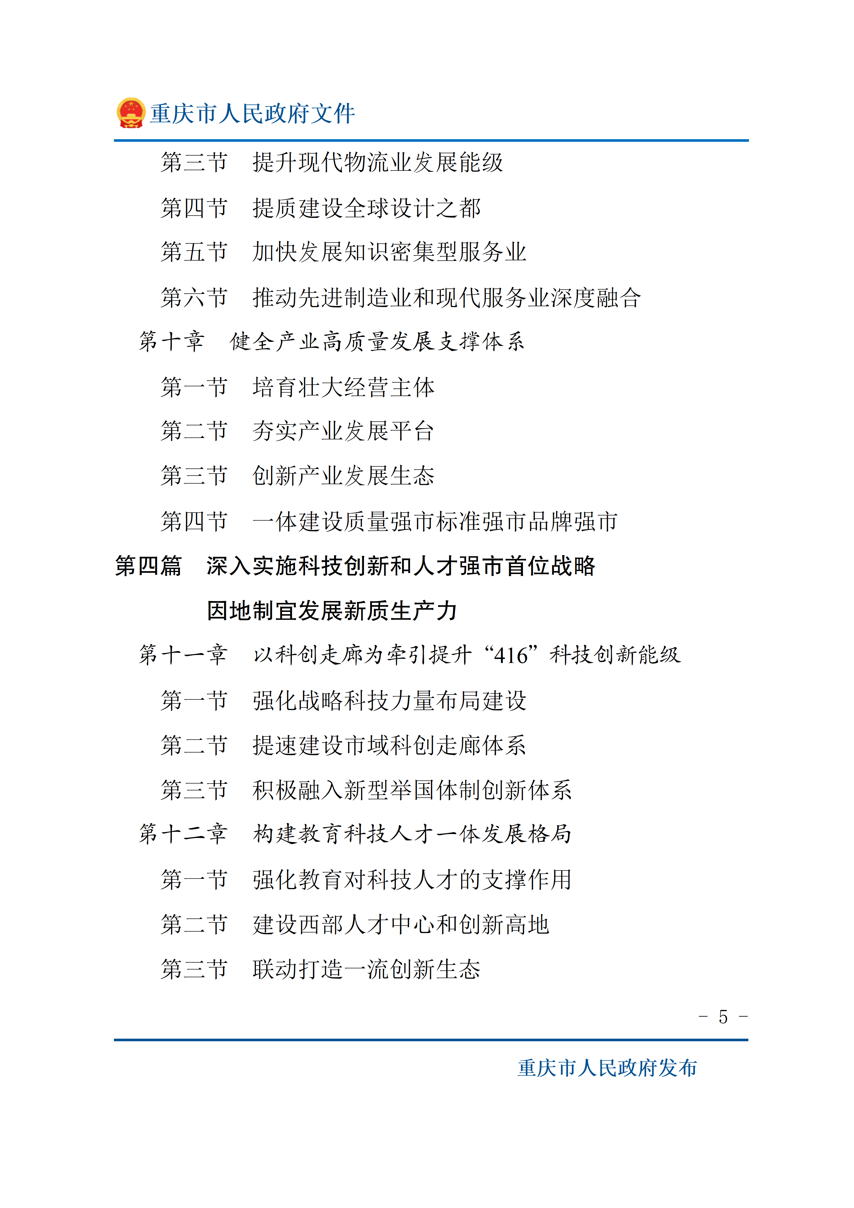 重庆市人民政府关于印发《重庆市国民经济和社会发展第十五个五年规划纲要》的通知