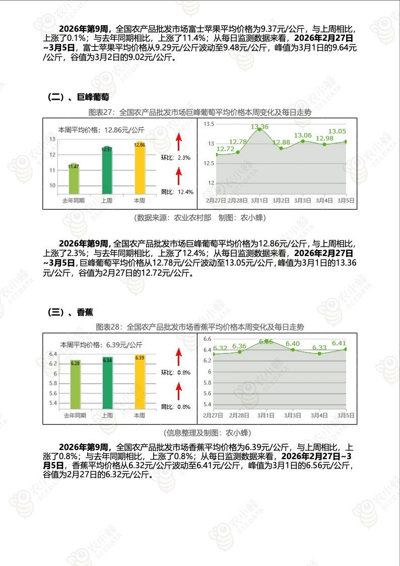 《农小蜂:全国农产品批发市场价格行情监测周报(2026年第9周)》